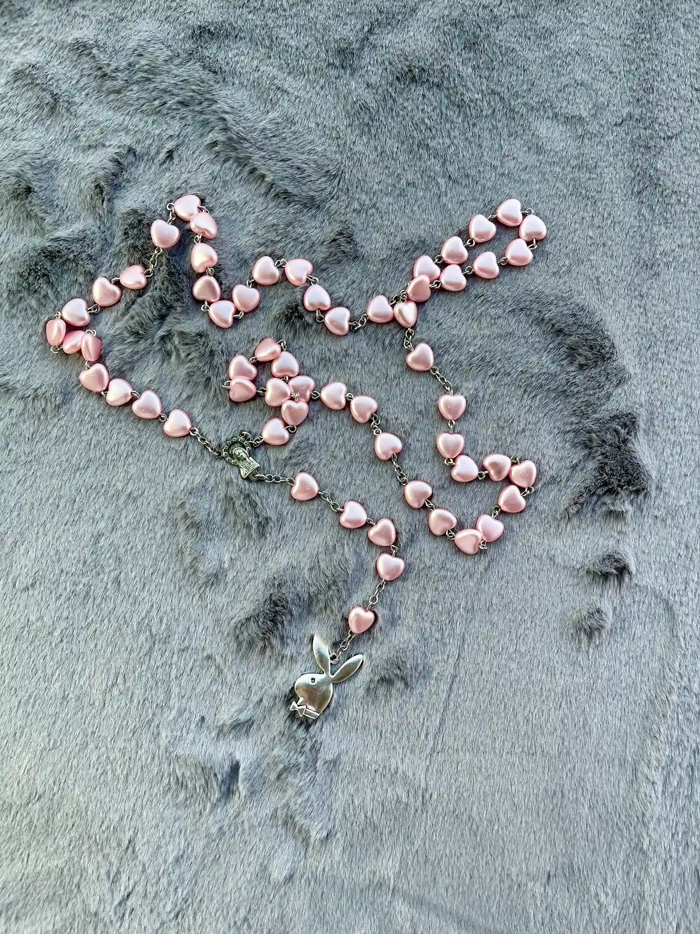 Colgante tipo rosario inspirado en PlayBoy Rosa y Plateado
